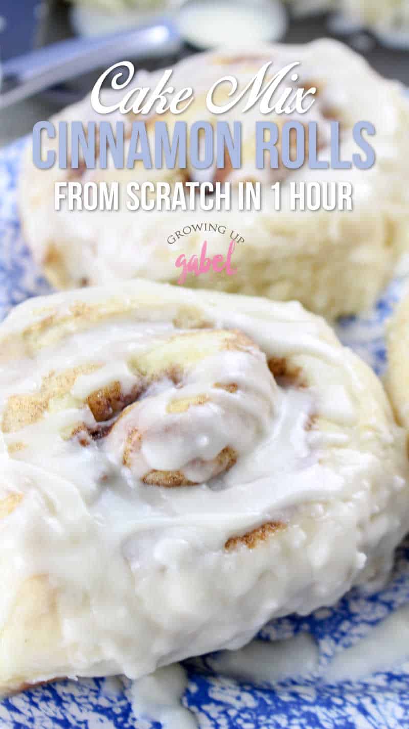 Learn how to make easy cinnamon rolls from scratch with a yellow cake mix and yeast in under an hour. Frost with a homemade frosting for a quick breakfast treat.