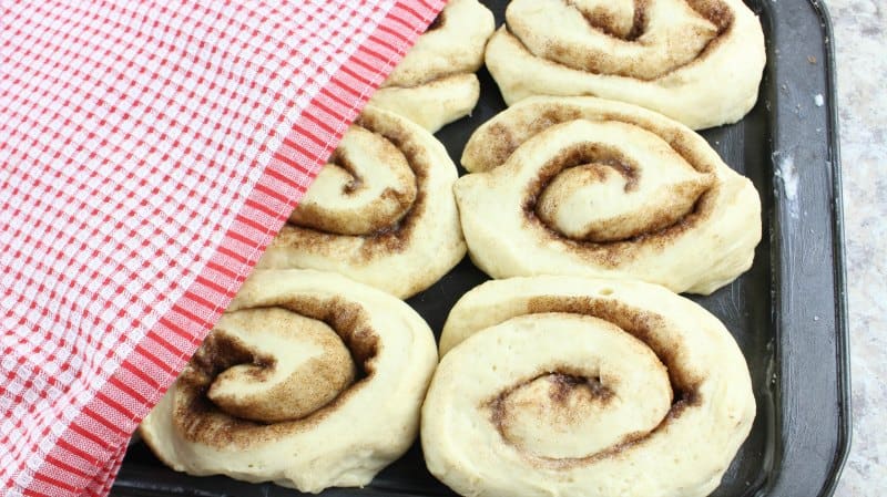 - Cut into 1 1/2 inch slices and place on the greased pan. Cover loosely with a towel and place in a warm place for 15 minutes or until the rolls double in size.