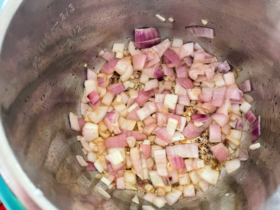 Press the “Sauté” button on the Instant Pot. When the pot is hot, add 1 tablespoon of olive oil until hot.