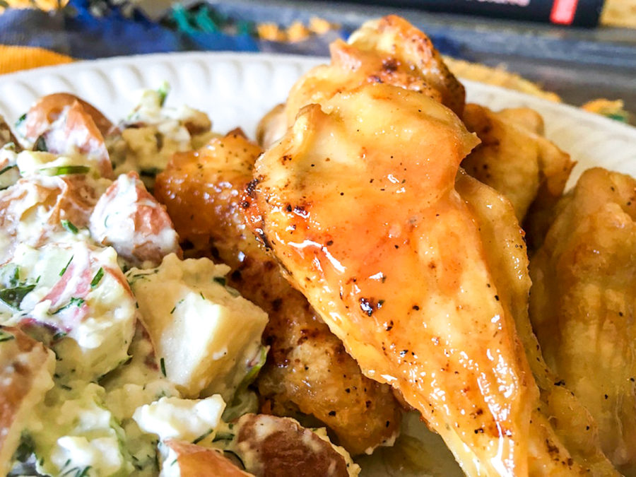 Chicken wings are a great choice for casual gatherings because they are easy to make and perfect for eating with your fingers. They are also extremely versatile because they can be tossed with any number of sauces or seasonings. Quick and Easy Homemade Buffalo Sauce is always a favorite sauce for chicken wings. The honey-mustard sauce used in this version is a delicious alternative to traditional wing sauce. It pairs beautifully with potato salad or other picnic-worthy side dishes making it great for summer.