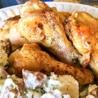 Honey mustard chicken wings are baked in the oven and then covered in homemade honey mustard chicken wing sauce made with honey, dijon mustard, butter, and garlic.