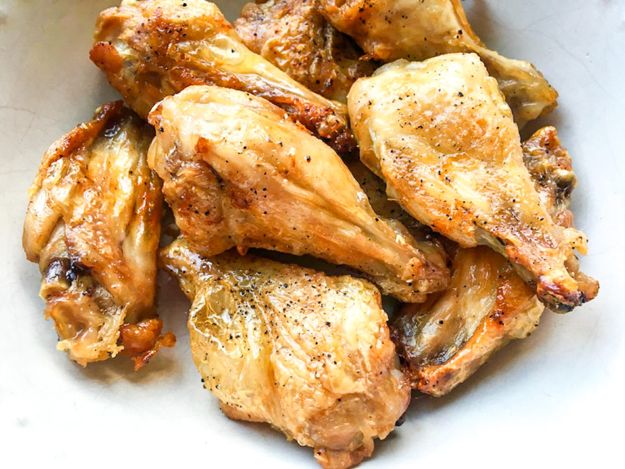 These chicken wings are baked in the oven. You can cook the wings however you like. An air fryer does a great job cooking crisp chicken wings.
