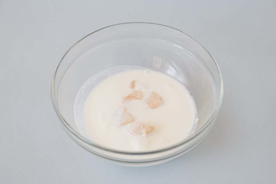 To make the enriched dough, start by warming the milk. You can warm it in the microwave or on a stovetop. You want the milk luke warm, not hot. If it is too hot, it will kill the yeast.