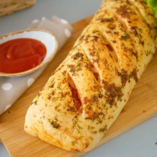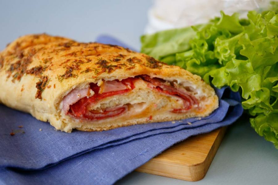 Stromboli is usually served sliced with a side of red dipping sauce. These are great for pizza night but also parties and dinner on the go.