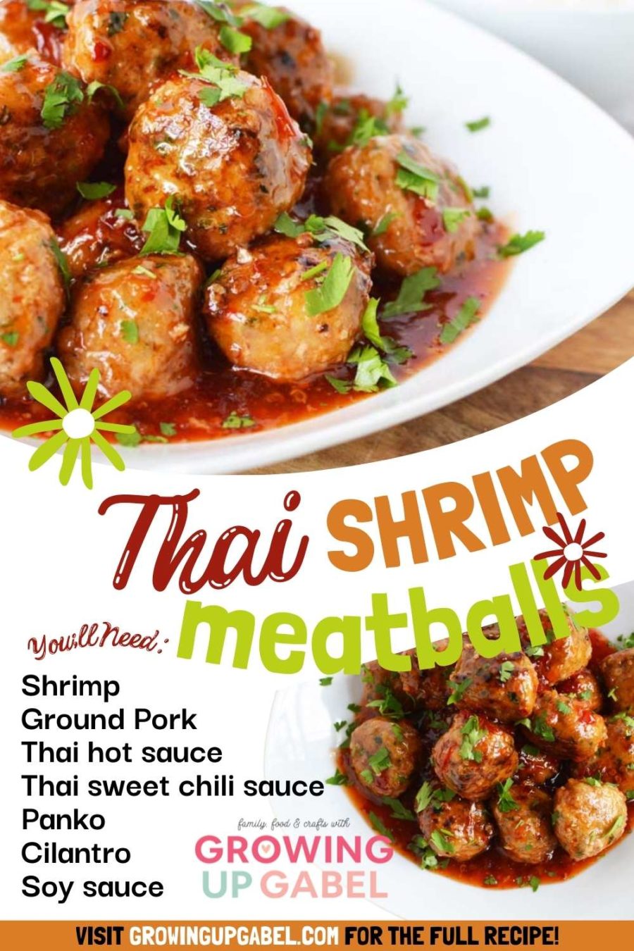 Slightly spicy shrimp and pork meatballs made with Thai flavorings are fried in oil and then covered in a Thai sweet chili sauce.