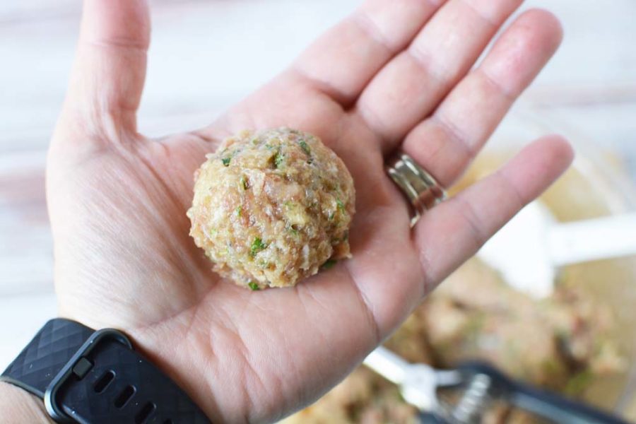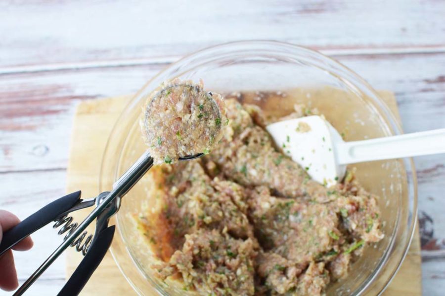 Using your hands or a cookie scoop, form the meat mixture into 2-inch balls.