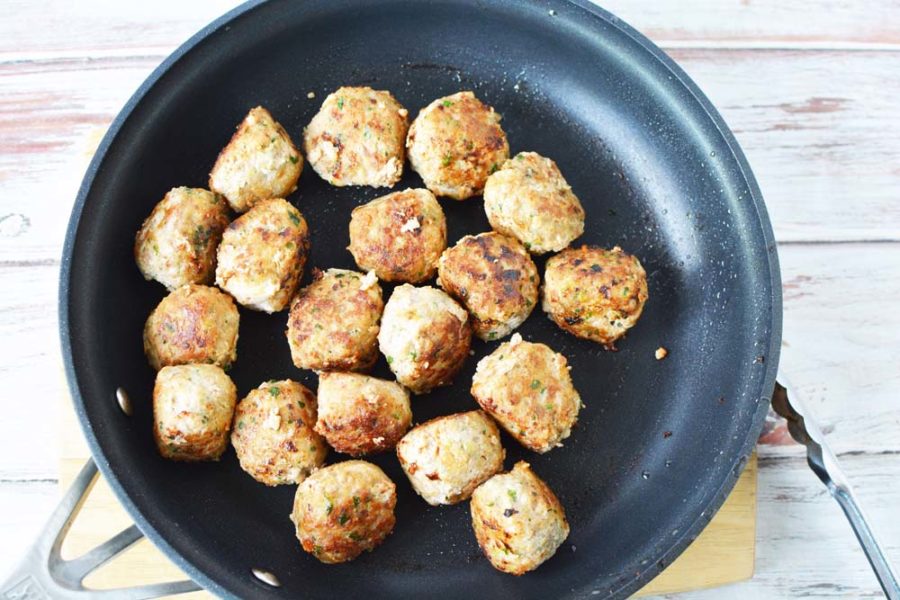 Set the balls aside on a platter and continue to make meatballs until all of the mixture is used up. You should get about 19-20 meatballs.