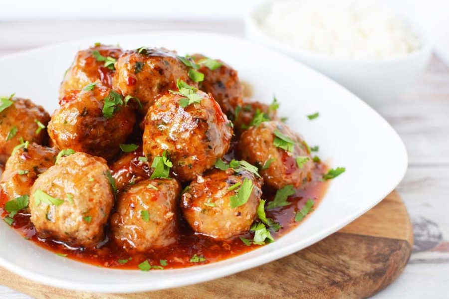- Toss the meatballs with the Thai sweet chili sauce until well coated. Garnish with more cilantro.