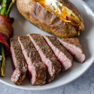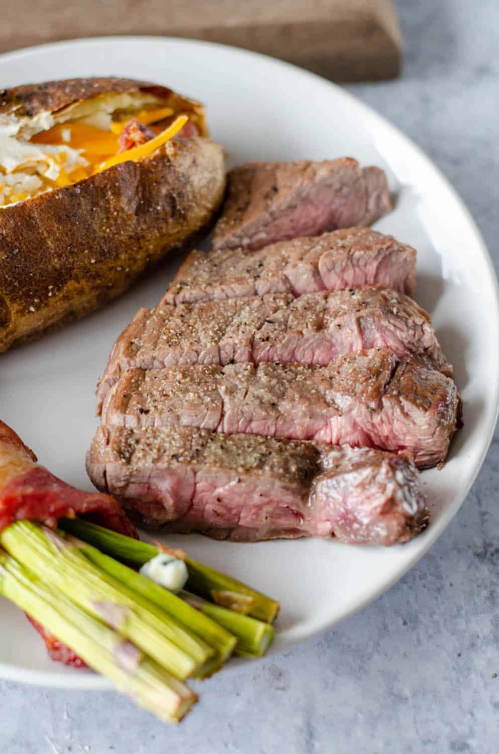 Pair your air fryer steak with air fryer asparagus bacon bundles and some potatoes for a quick and easy meal.