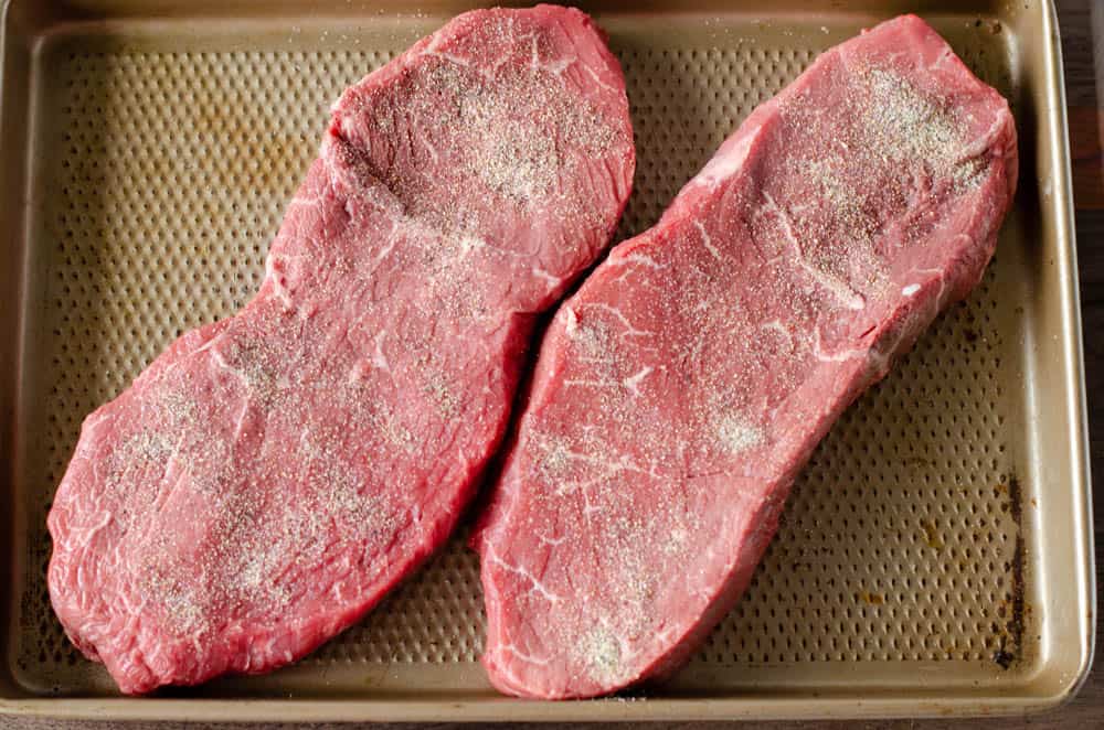 - Combine the garlic powder, onion powder, salt, and pepper. Sprinkle it over both sides of the steak.
