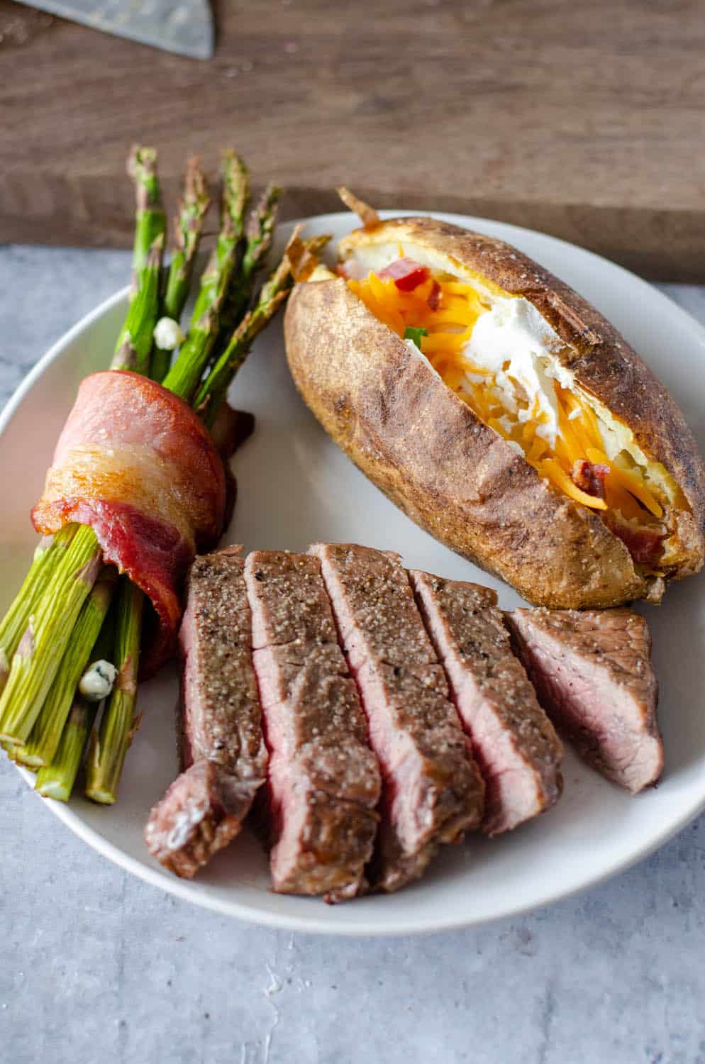 Serve with Air Fryer Bacon Wrapped Asparagus and Oven Roasted Parmesan Ranch Potatoes!
