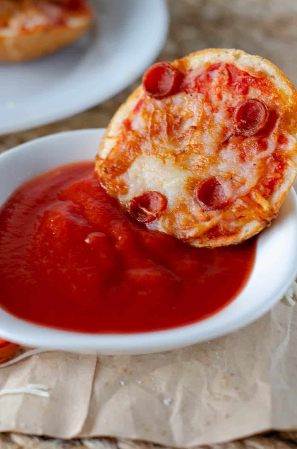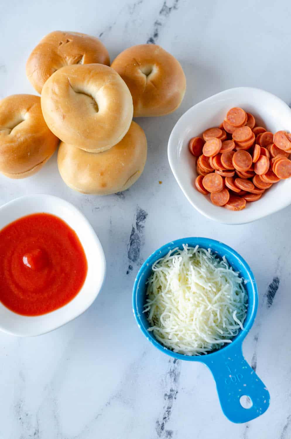 • Pepperoni – Mini pepperoni was made for bagel pizza bites. They fit perfectly on top of the mini bagels. You can use any kind of pepperoni you prefer though.