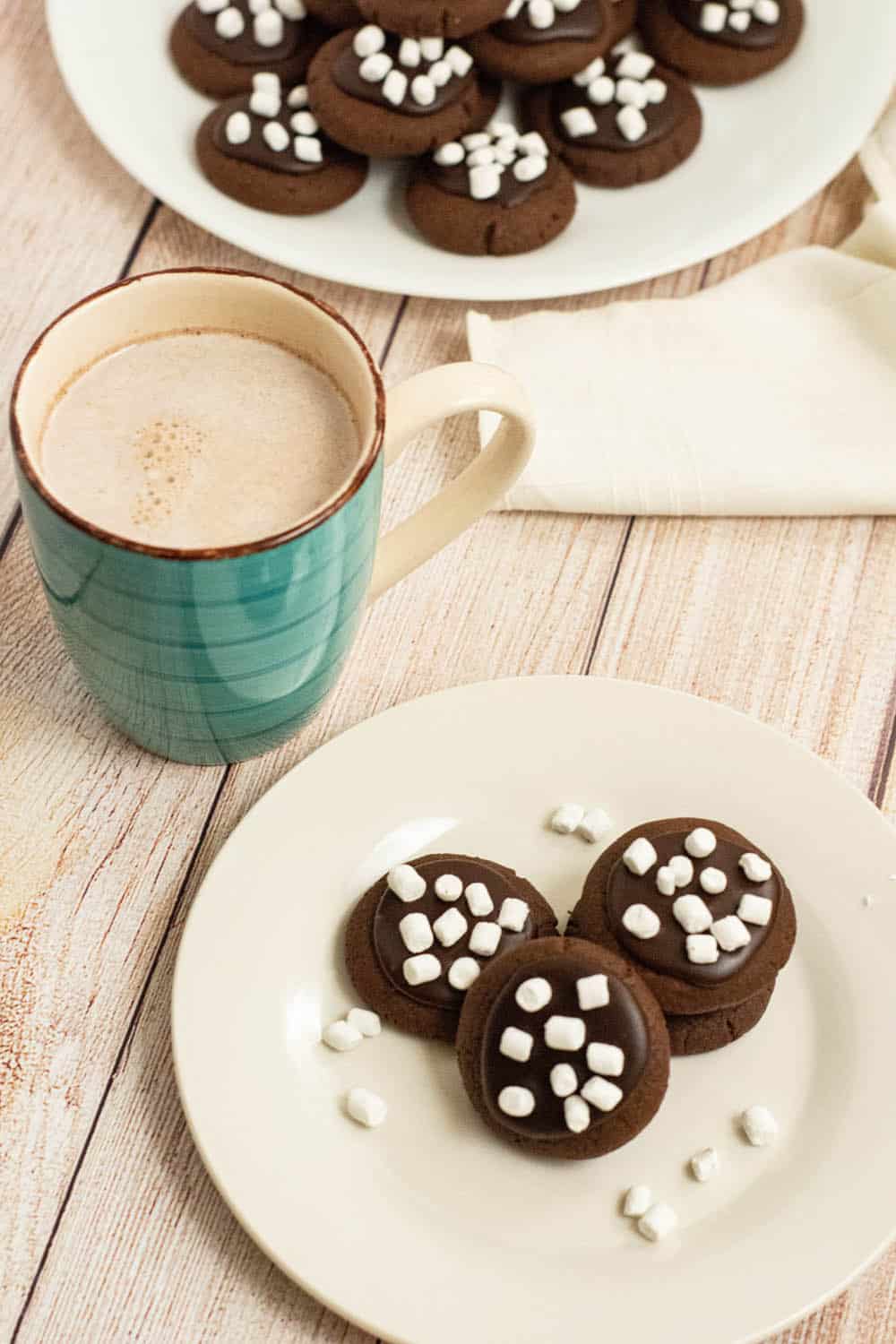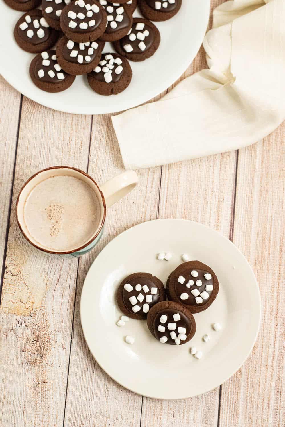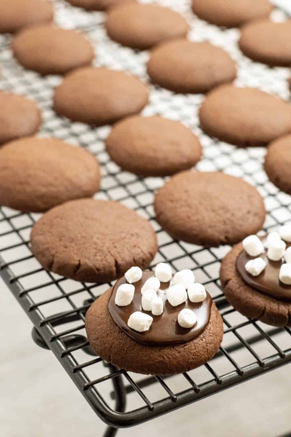 Hot Chocolate Cookies are a rich chocolate cookie topped with a creamy chocolate frosting and tiny marshmallows.