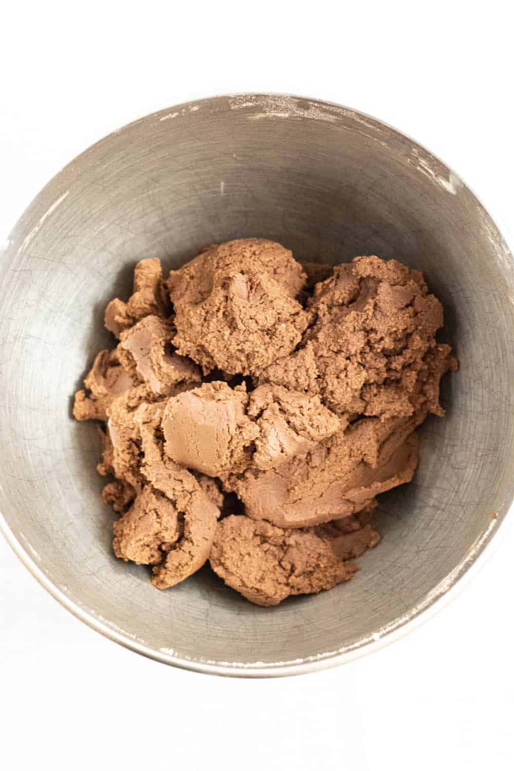 Gradually add in the dry ingredients and milk into the butter mixture until well incorporated. This is a fairly dry dough but if it is too crumbly add in more milk a teaspoon at a time until the dough sticks together.