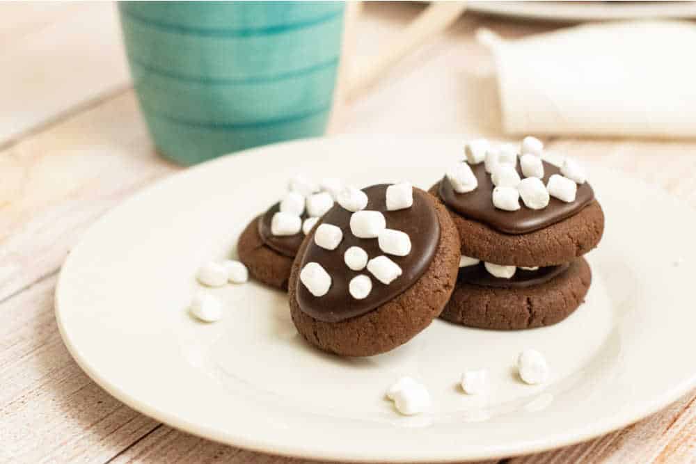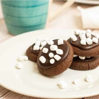 These Hot Chocolate Cookies are so fun for wintertime. A delicious chocolate cookie is topped with a homemade chocolate fudge recipe. Tiny marshmallow bits add the final touch for a hot chocolate in cookie form.