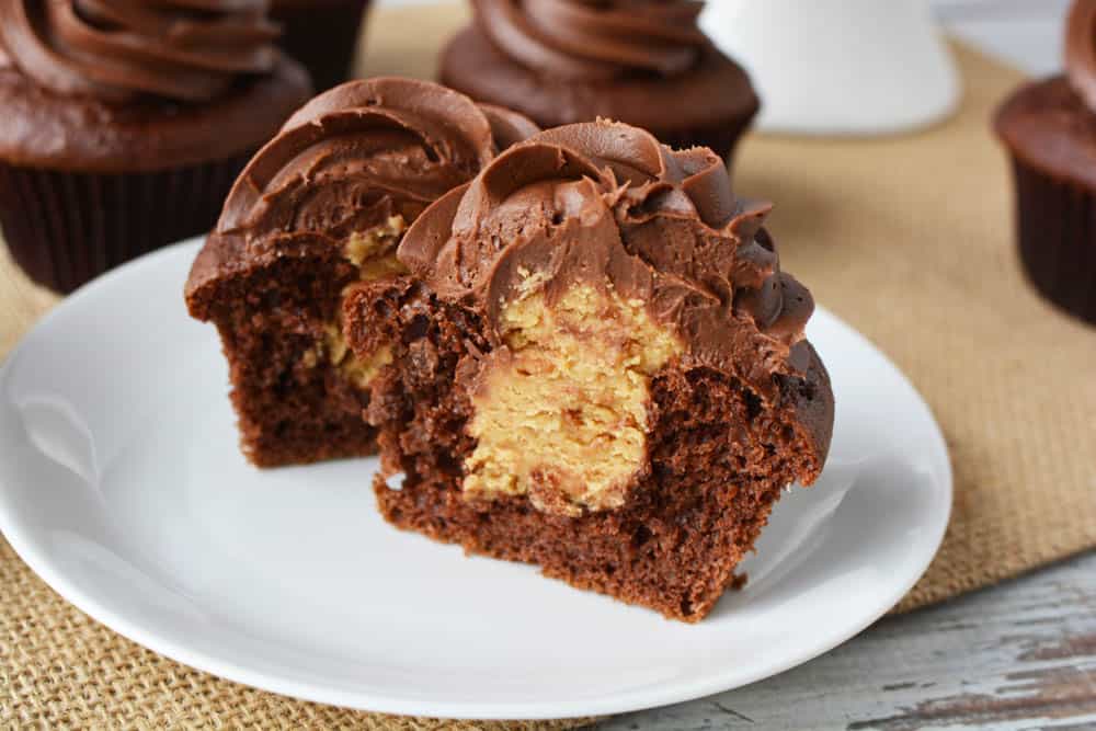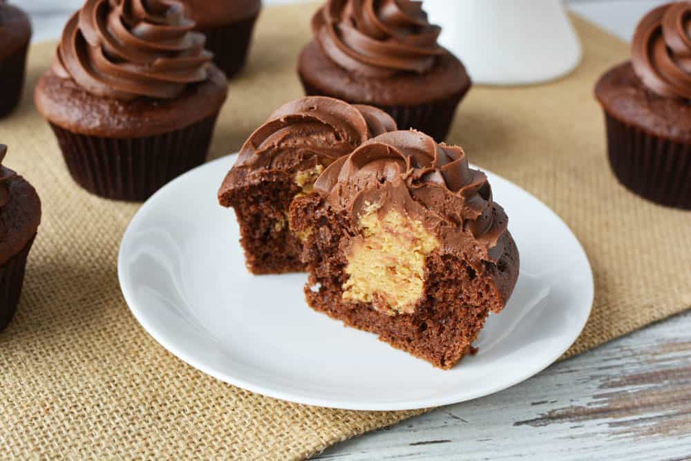 Peanut Butter Fudge Filled Chocolate Cupcakes