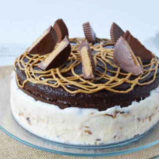 Chocolate peanut butter ice cream cake is a rich and decadent dessert that’s easy to make at home with a round cake and ice cream.