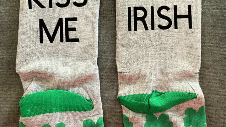 Make a pair of green socks for St. Patrick’s Day using a pair from the dollar store, Cricut Infusible Ink, and a Cricut cutting machine.