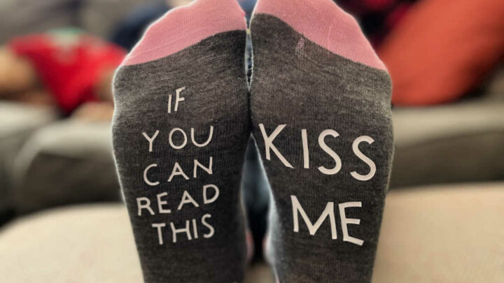 Make a pair of “If you can read this” socks for Valentine’s Day using a pair from the dollar store, Iron-On or HTV vinyl, and a Cricut cutting machine.