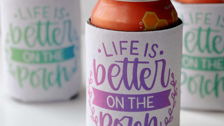 You don’t need vinyl to make a Cricut koozie. Instead, use Cricut Infusible Ink to create colorful personalized koozie designs.