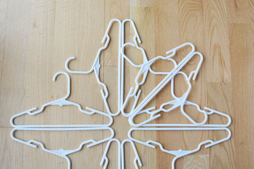- Repeat with the remaining 6 hangers around in a circle touching the hanger hooks with the hanger set next to them.