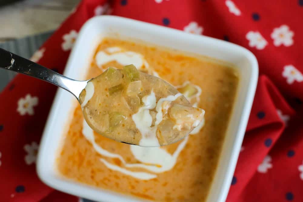 Make buffalo chicken chili in your slow cooker in just a few hours. This low-carb recipe is great for a chicken wing fix!