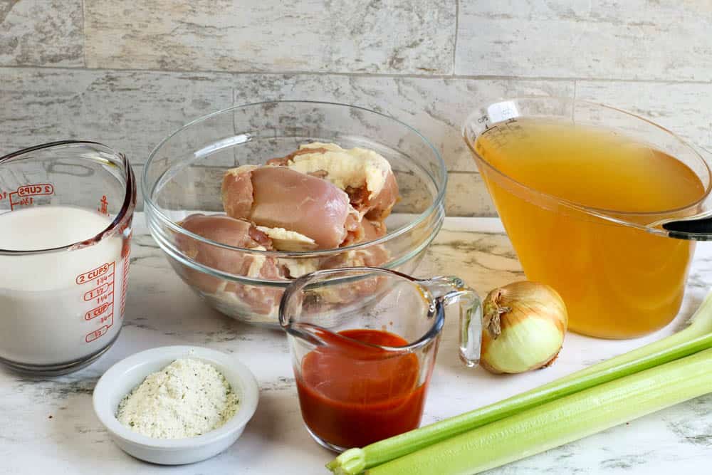 - Homemade buffalo sauce – you can also use a store-bought sauce, but our homemade version is super easy to make!