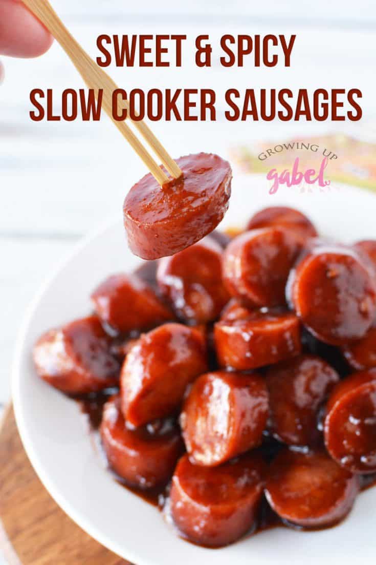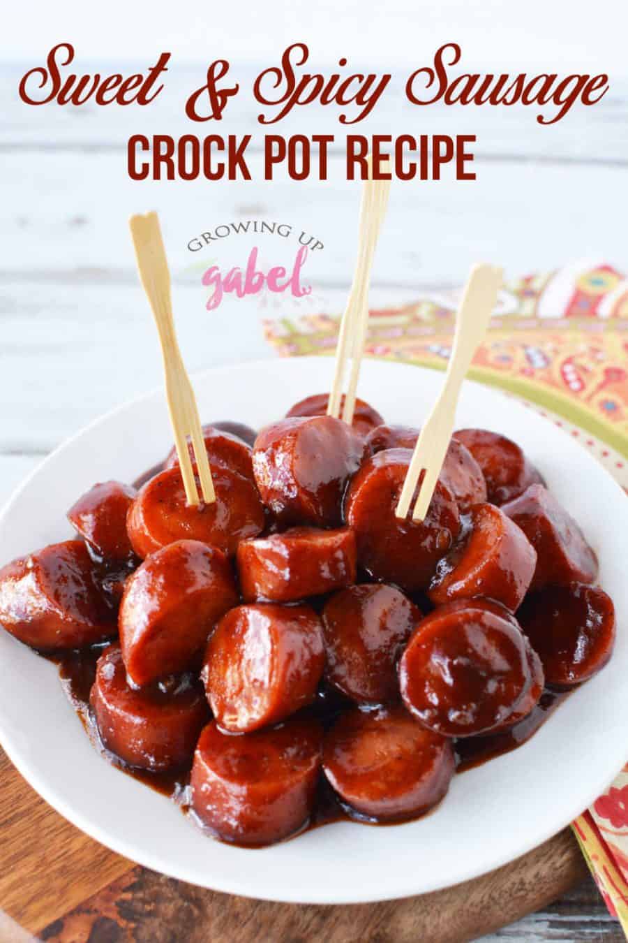 Leave the sausages right in the slow cooker and set it on warm to serve. Or you can take them out and serve in a bowl. They are fun to eat with large toothpicks.