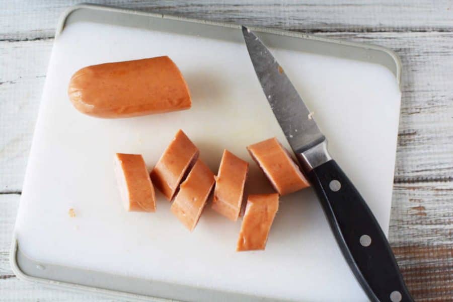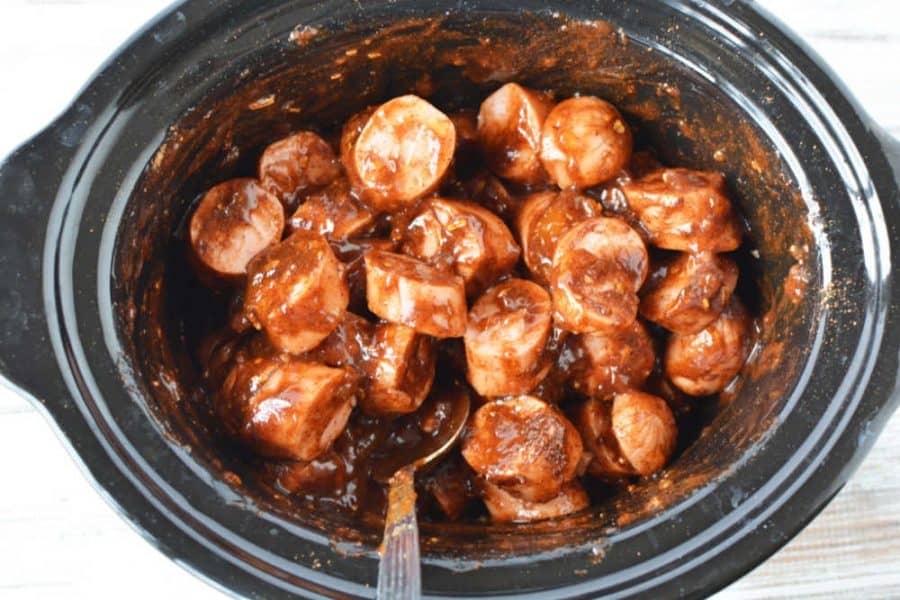 You can also use packages of the small smokies sausages and not cut those up. Just dump the whole package right into the crock.