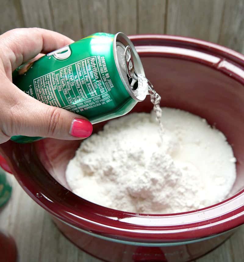 Use the entire cane of 7UP. You don’t need to wait for the fizz to go away before proceeding. But it’s fun to watch.