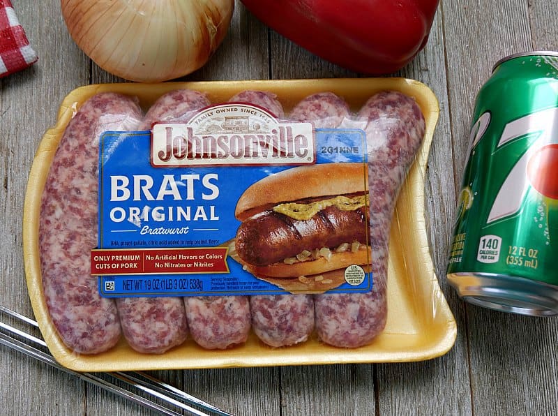 While you’re at Walmart picking up the ingredients for your cake, make sure to grab a couple packages of Johnsonville brats. I found them in an endcap in the meat aisle. Aside from being the best brats for summer, Johnsonville brats have been made right here in the US from premium pork since 1945.
