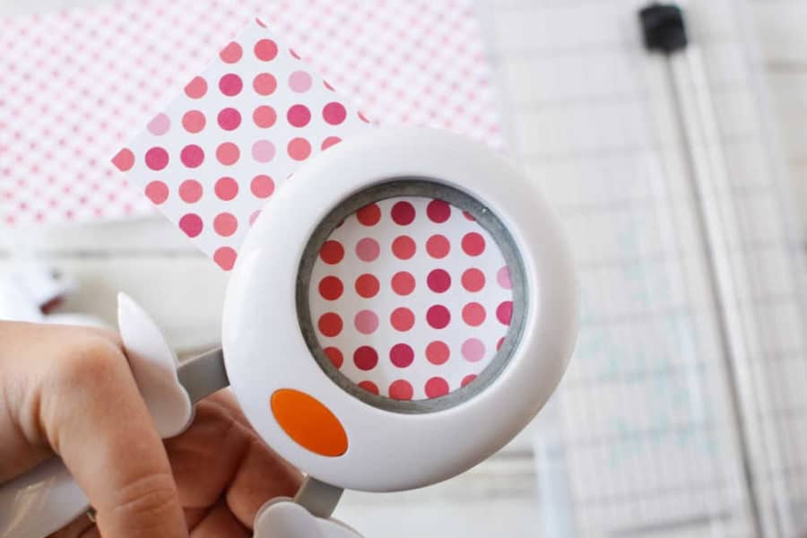 Then, use the scrap paper from trimming the paper to cut 2, 2″ circles with a circle cutter.