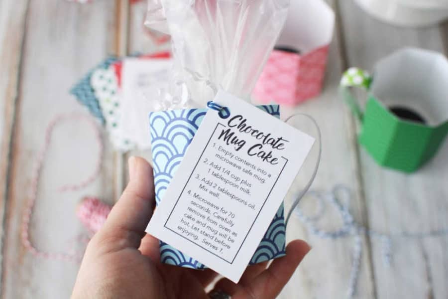Hand out your homemade mug cake mixes! Make a mug cake in a microwave-safe mug for an afternoon treat or a single serving dessert.