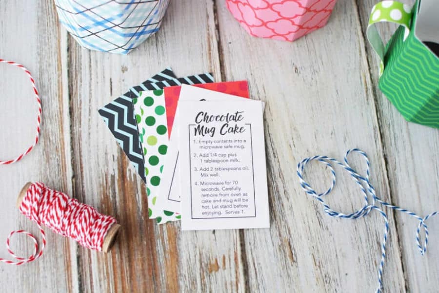 This homemade mug cake mix is packaged in an adorable paper mug that you can give as a gift. Your recipients then make the cakes in their own microwave-safe mugs. These homemade mug cake mixes are great for neighbors, teachers, and to sell at craft bazaars!