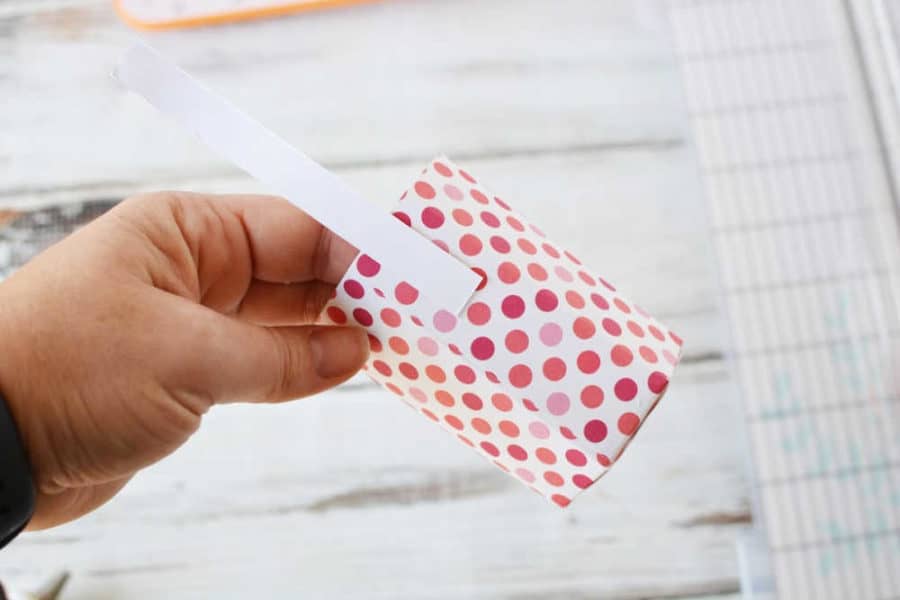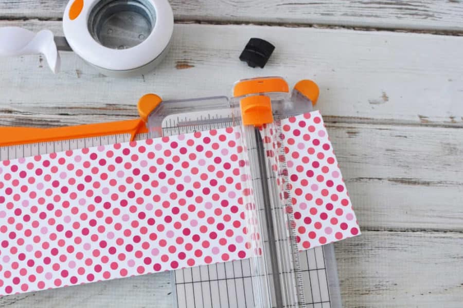 Next, use a scoring blade on the paper cutter to score the paper at 1″ along the short side. Score the paper 1″ from the edge on the long edge. This will help the mug stay standing up easily.