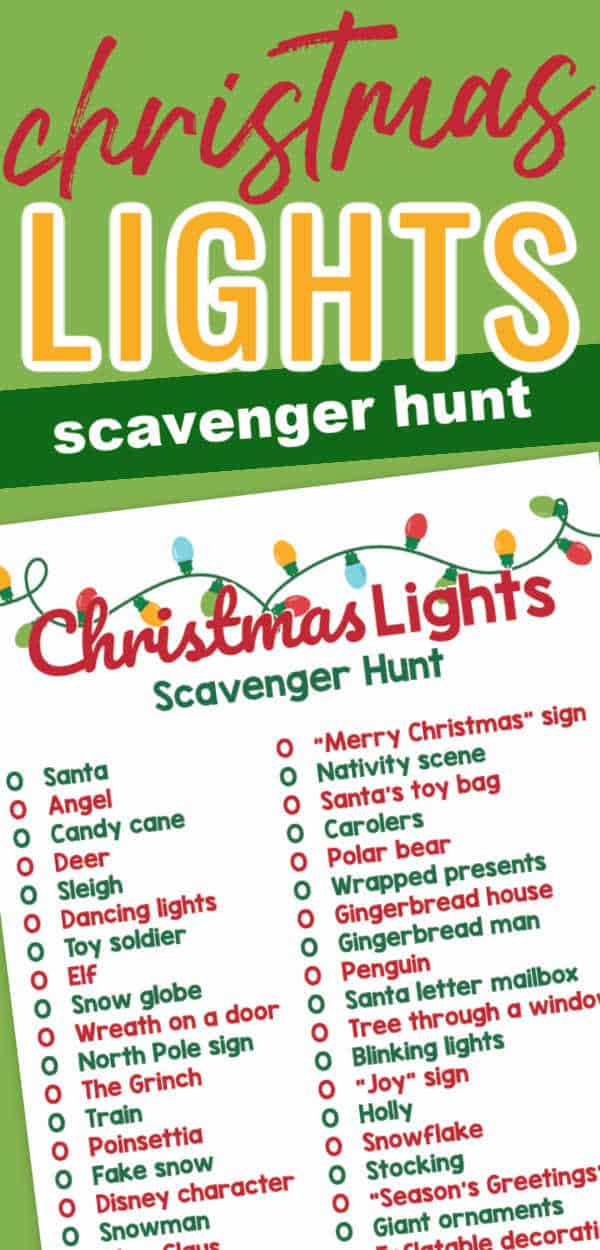 First, print out the Christmas Lights Scavenger Hunt list for free! Just fill out the form at the end of this article. After you hit submit, the page should open with the printable available to download.