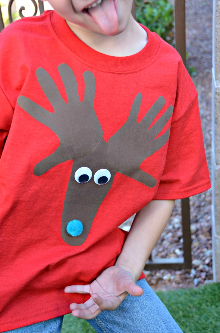 This adorable no sew Christmas shirt for kids uses your child’s hand and foot print to create an adorable reindeer. Use an iron on adhesive, googly eyes, and a pom pom to make this cute homemade Christmas gift.