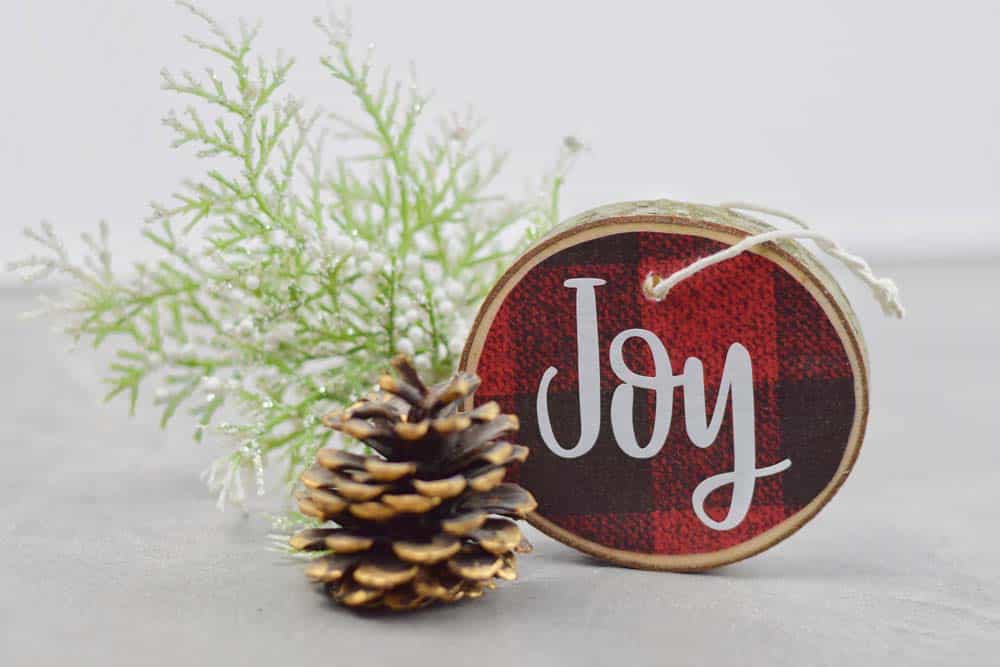 Easy JOY Wood Slice Christmas Ornament with Cricut