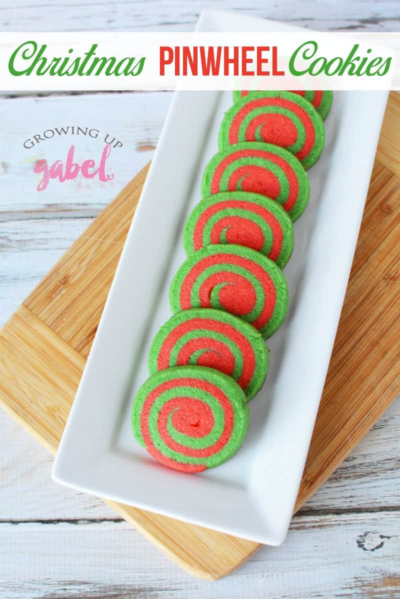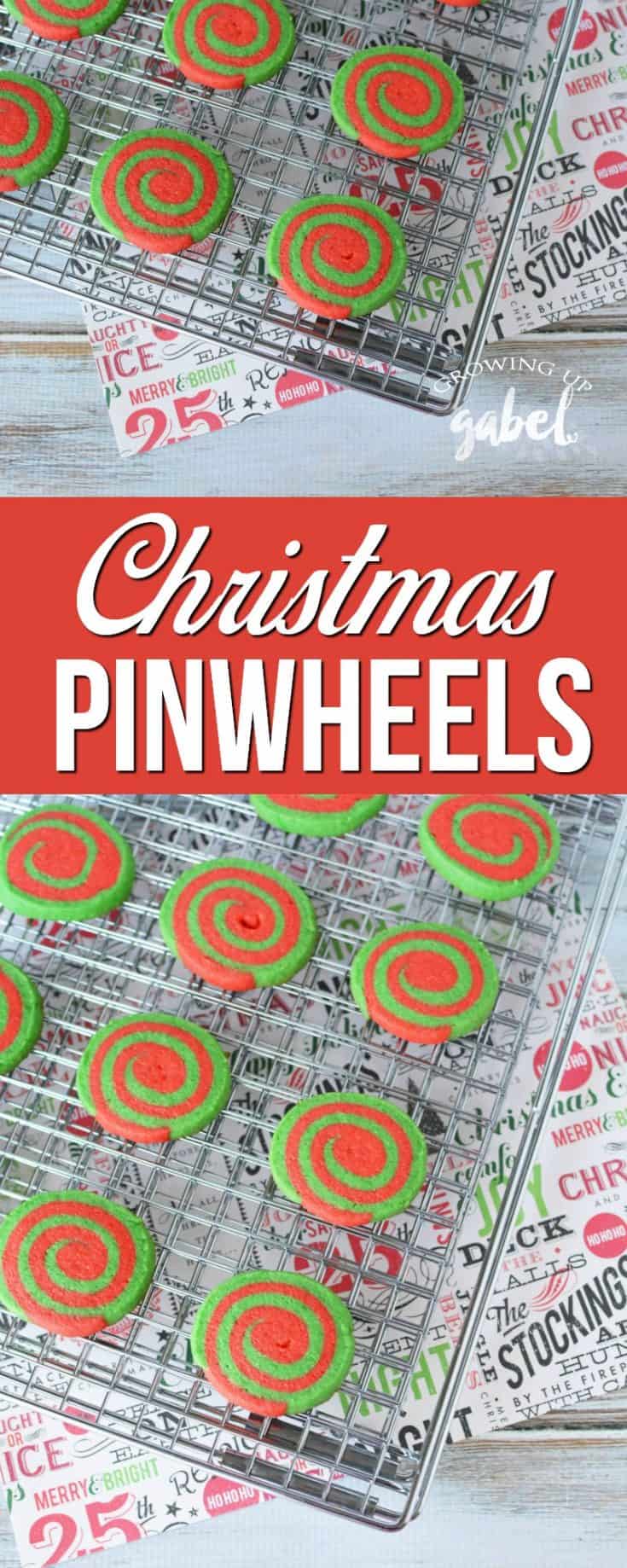 Pinwheel cookies are a colorful and festive addition to any Christmas celebration. A basic cookie dough recipe is colored red and green. Swirl it together and refrigerate. Then slice and bake.