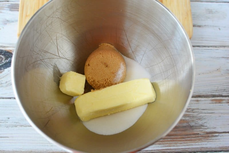 - Add butter and sugars to a mixing bowl and cream, on medium high speed, until light and fluffy. Beat in egg and vanilla.