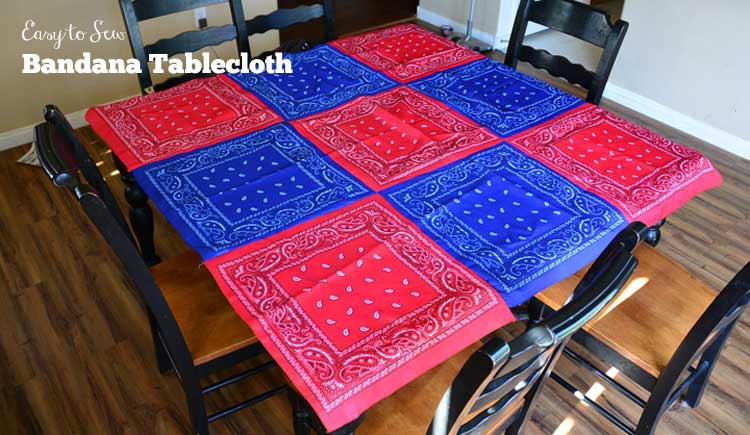 Make a festive bandana tablecloth in about 30 minutes using dollar store bandanas!
