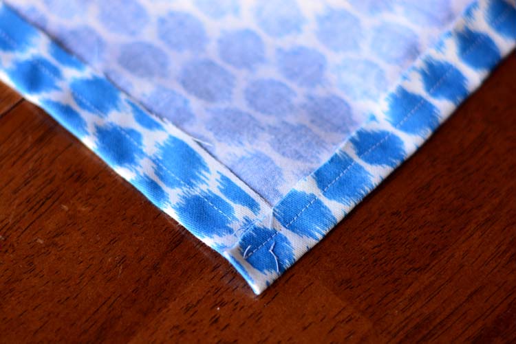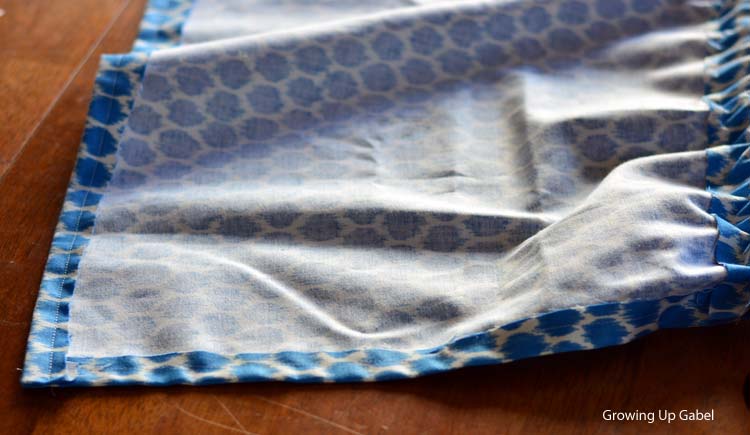 I did the same with one long edge of the fabric. It didn’t make a difference which end of the fabric it was on this print, but make sure to do the small hem on the bottom of the print.