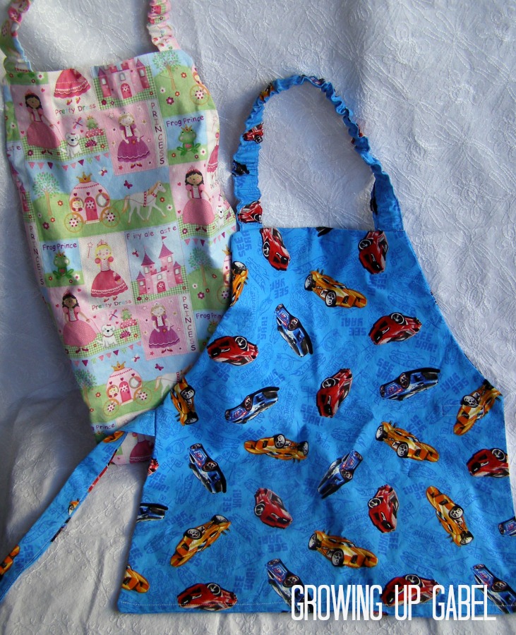 This year I am making as many handmade Christmas gifts as I can manage. These child aprons are simple beginning sewing projects that can be used in the kitchen, at the craft table or even in the garden. The aprons are no tie so they are easy for kids to put on themselves.