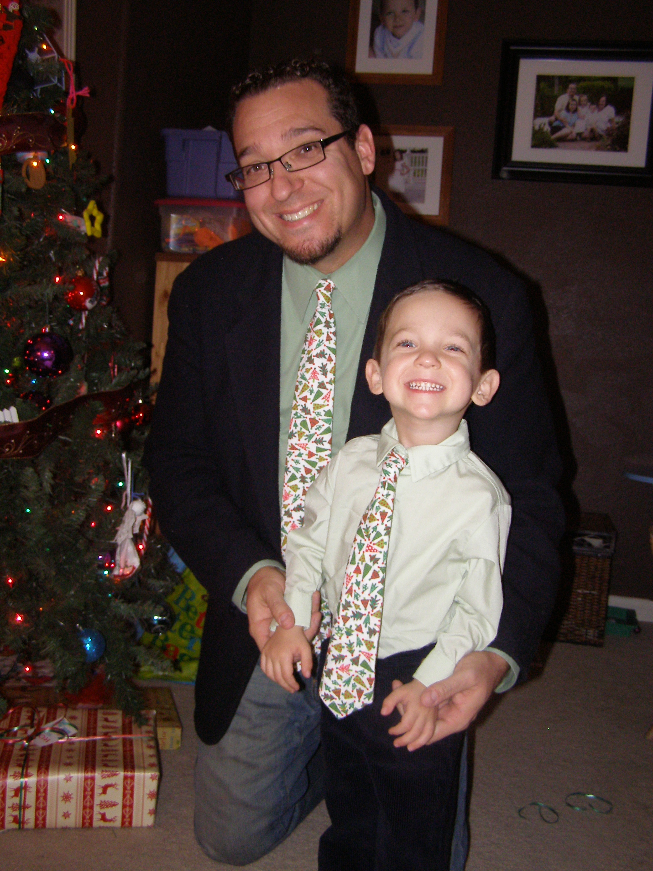 After a 20-some year sewing hiatus, I am in love with sewing again. I can’t seem to get enough of it and am spending most of my evenings at my machine, gleefully creating. My husband loves to have matching outfits with our son and I wanted to make them matching ties to wear for Christmas. I was a bit hesitant, but a friend of mine promised me that the patterns were easy. And they were. I’m delighted at the results and I can’t wait to make more.