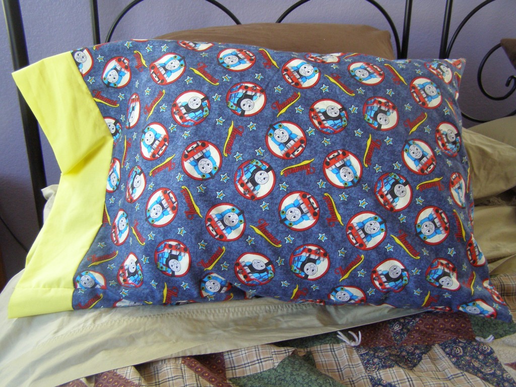 If you buy fabric that is 42-45″ wide, then you won’t need to cut it width wise. Just use it as is and cut length-wise only. It can get pricey to buy the fabric with licensed characters so an alternative would be to use plain colored broad cloth (what I used on the band on the openings) for the pillowcase and then use the patterned fabric for the band at the opening. Broadcloth runs around $2/yard, which is pretty inexpensive!