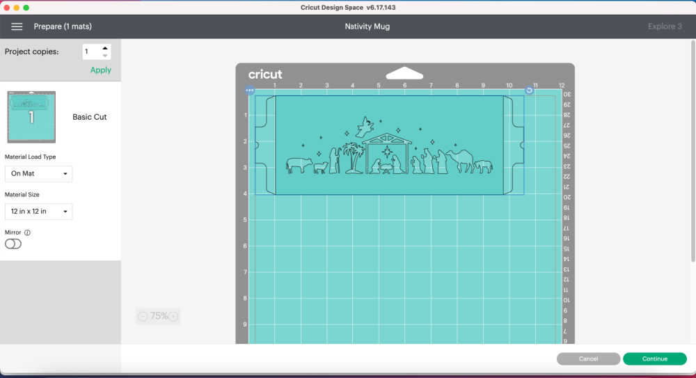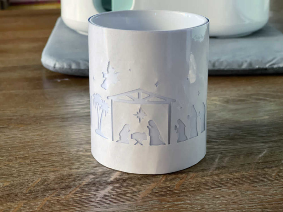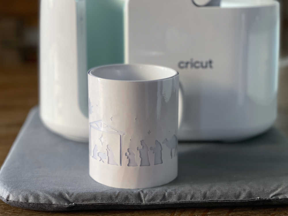 Last week, we shared a beautiful Santa mug, our first Cricut Mug Press project. To say that we are completely obsessed with making mugs now is an understatement. When we discovered a nativity image in Cricut Design Space, we had to put it on a mug.