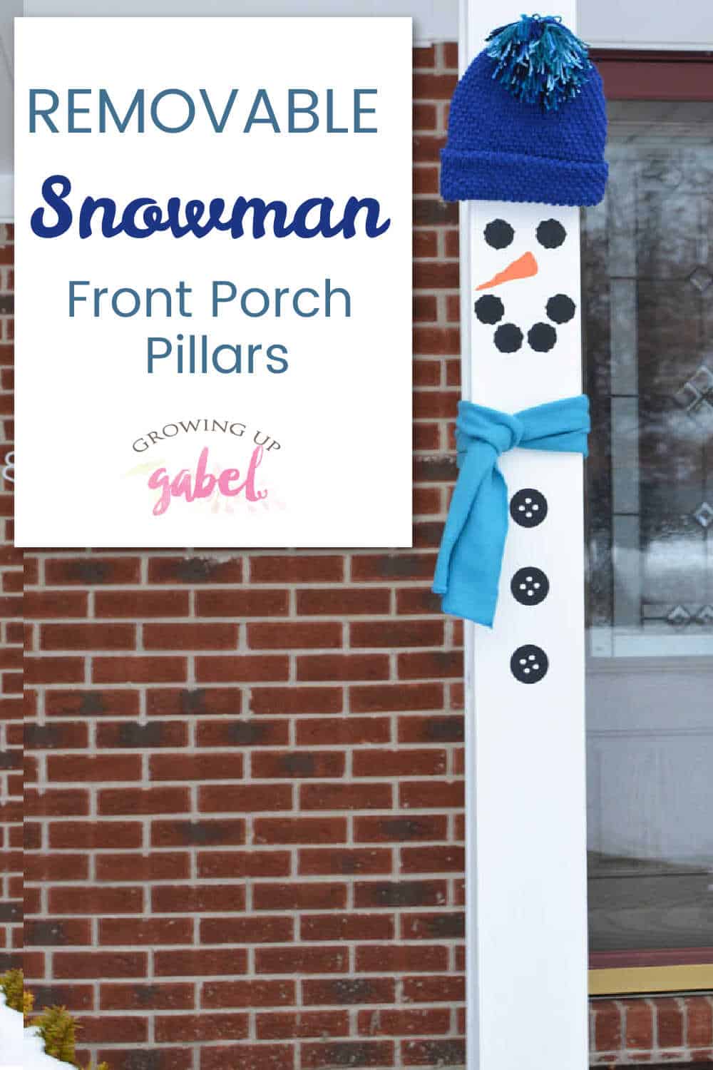 Dress up your front porch with snowman front porch pillars using removable vinyl. Use on permanent pillars or use primed wood to make your own removable snowmen.
