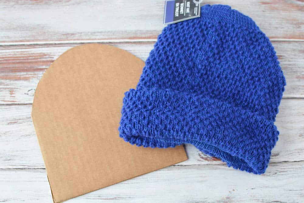 - Trace a stocking hat shape onto cardboard and cut it out with a utility knife. Slide the cardboard inside the hat.
