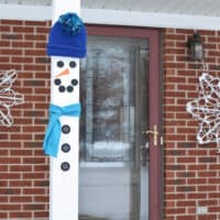 Taking down the Christmas lights always makes the outside of your house feel really plain. These snowman front porch decorations will help add a wintery mood. Don’t have porch pillars? No problem! You can use pre-primed 1′ x 6′ wood.