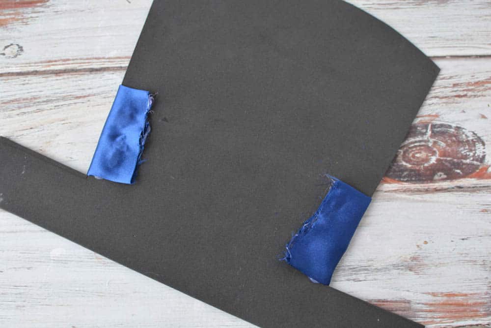 - Wrap around the front of the black foam and affix with hot glue on the back.